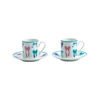 Ceramic Coffee Cup with Saucer | Colorful Bowknot Pattern Espresso Set for Home, Café & Gift